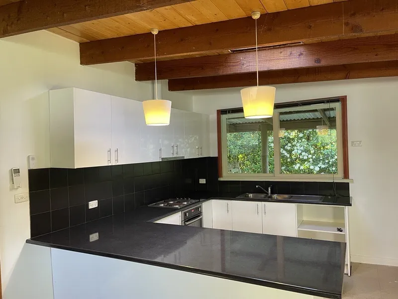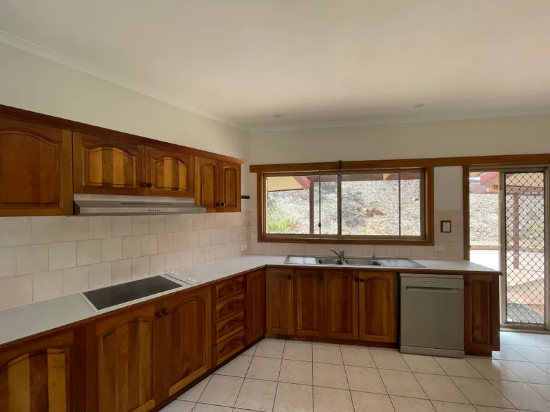The home features a spacious kitchen/dining area with electric cooktop, dishwasher, wall oven and ample bench and storage space. While the lounge room offers a split system, wood fire heater, large windows and sliding door that look out to the stunning views and lead you out to a huge wraparound deck.