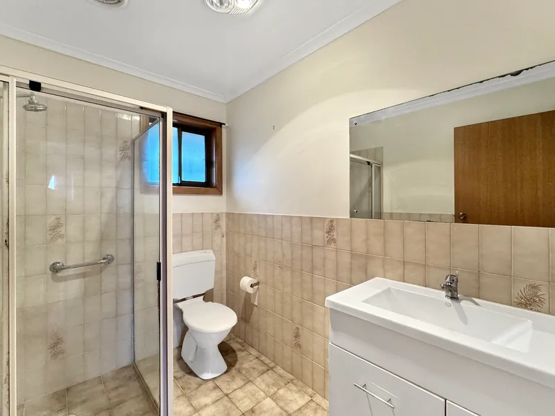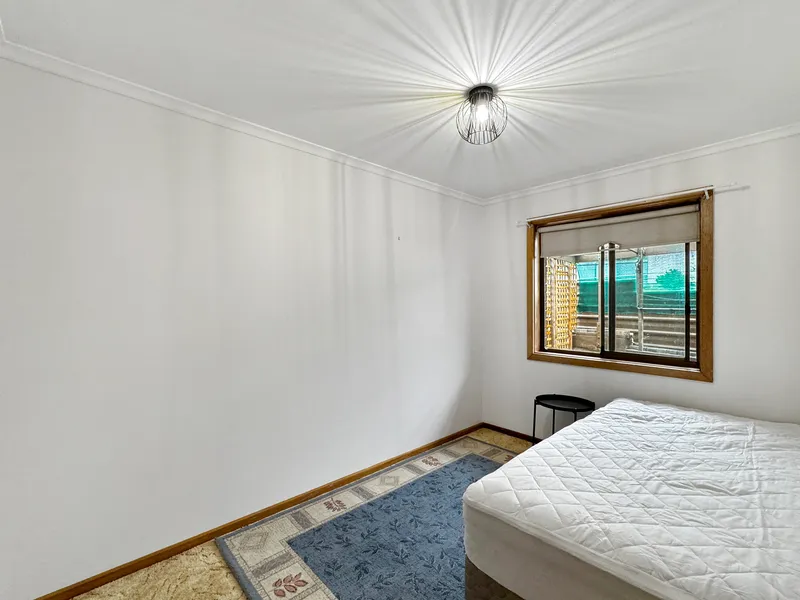 Both bedrooms are carpeted for added comfort, with the main bedroom including a built in robe for practical storage. The bathroom is neat and functional, servicing the home with ease.