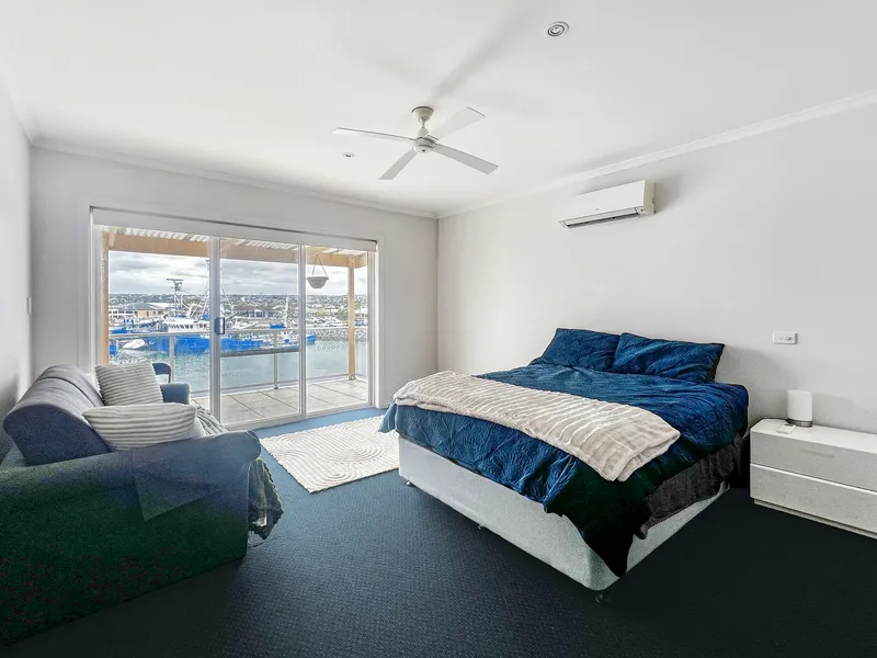 Upstairs, the home features three well-sized bedrooms, each fitted with ceiling fans for year-round comfort. Bedrooms one and two open out to private balconies overlooking the tranquil waterways of the Port Lincoln Marina, creating the perfect spot to start the day or unwind in the evening while enjoying the stunning outlook. The master bedroom includes a split system for year round comfort, a walk-in wardrobe and convenient access to the centrally located three-way bathroom, which is complete with a shower, spa bath and a separate toilet.