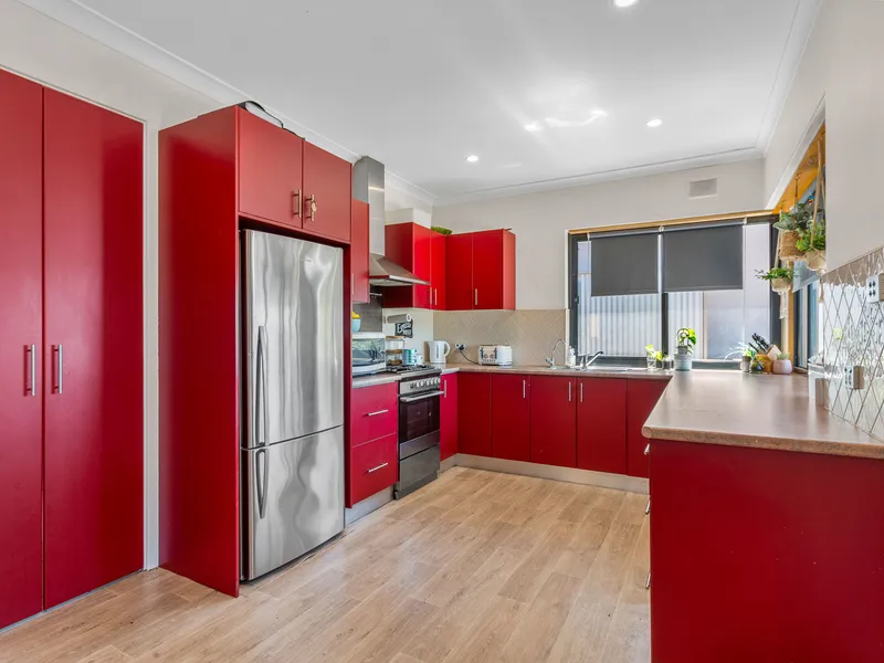 Outside, a large outdoor entertaining area overlooks the low-maintenance yard, ideal for relaxing or spending time with family and friends. Additional features include drive-through carport access to the rear yard, extra off-street parking, and rainwater tanks.