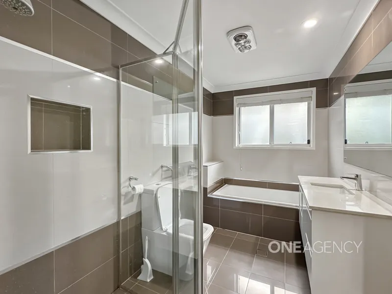 With a vast, fenced backyard, there's ample room for children to play. The convenience extends with a double garage and a solar system to ease those electricity bills. The main bathroom, equipped with a bathtub, offers a perfect end to any day.