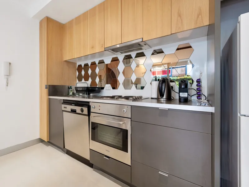 The Apartment building underwent redevelopment to preserve the heritage facade of the building from the 1800’s when it was an old brewery. Hidden behind this facade is a hidden oasis with a unique design that is thoroughly modern. Balinese style gardens create that relaxing away from it all feel. Peace and serenity, as you do laps of the communal pool or work out in the fully equipped gym. Please note Children are not allowed in the gym.