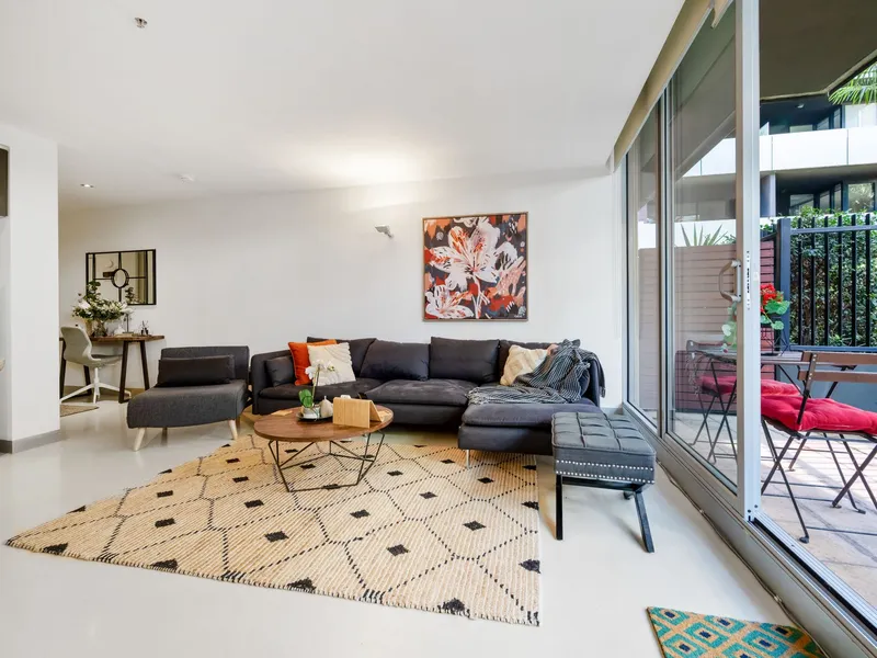 This Port Melbourne apartment has been stylishly decorated with function in mind – including a separate study nook and easy, relaxed, open plan living.
