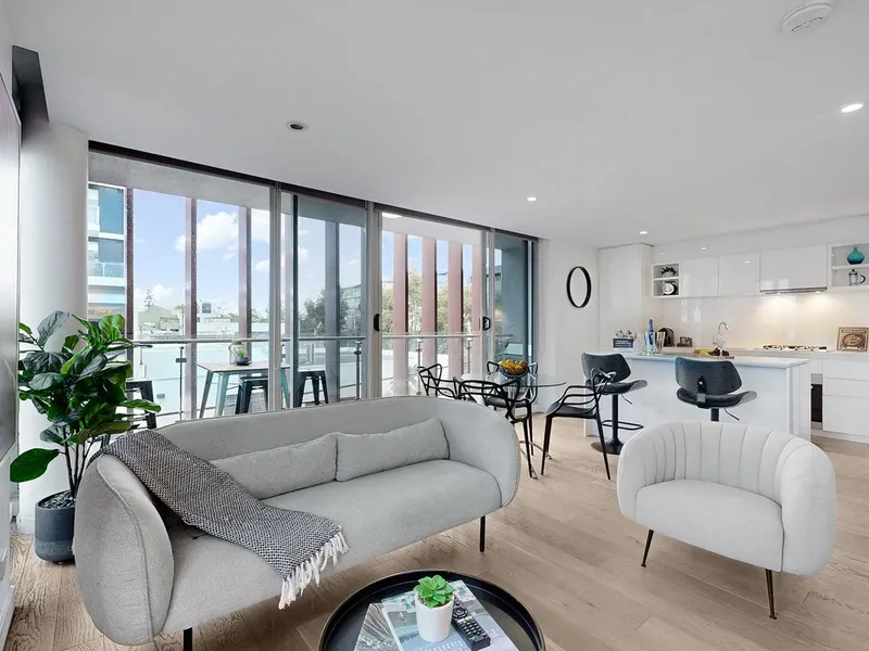 Discover the epitome of luxury living in our new Port Melbourne residence, where contemporary elegance meets spacious modern living. This expansive 156m2 apartment boasts breathtaking panoramic views of Port Phillip Bay, delivering a serene coastal ambiance just moments from the city. Dive into the details of this magnificent property, offering a rare blend of grandeur and functionality: