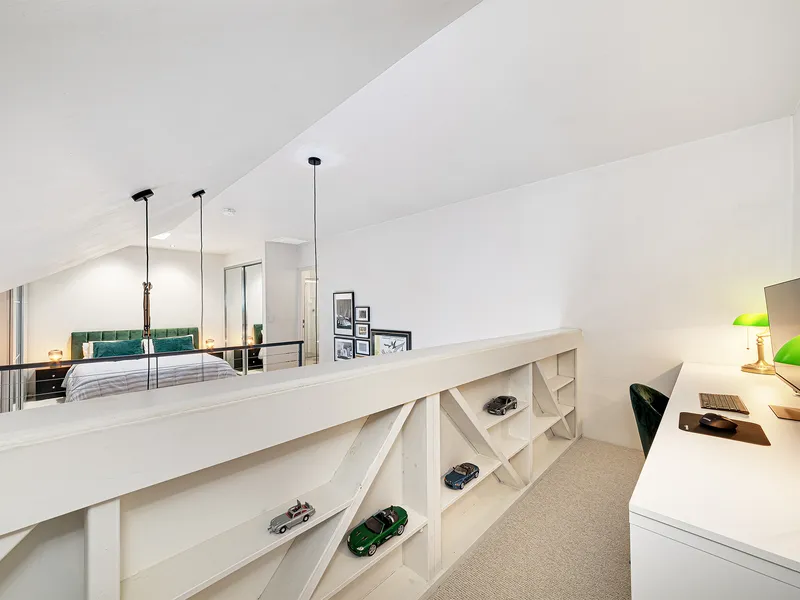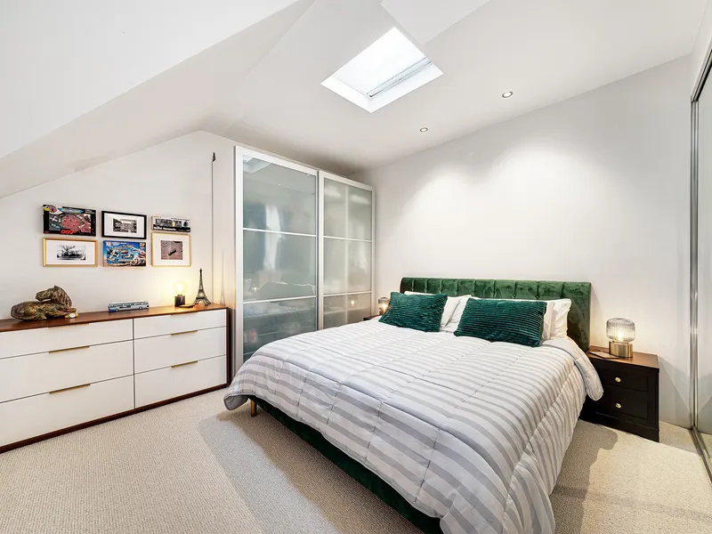• Skylit loft style bedroom with ample bespoke storage + built-in robes