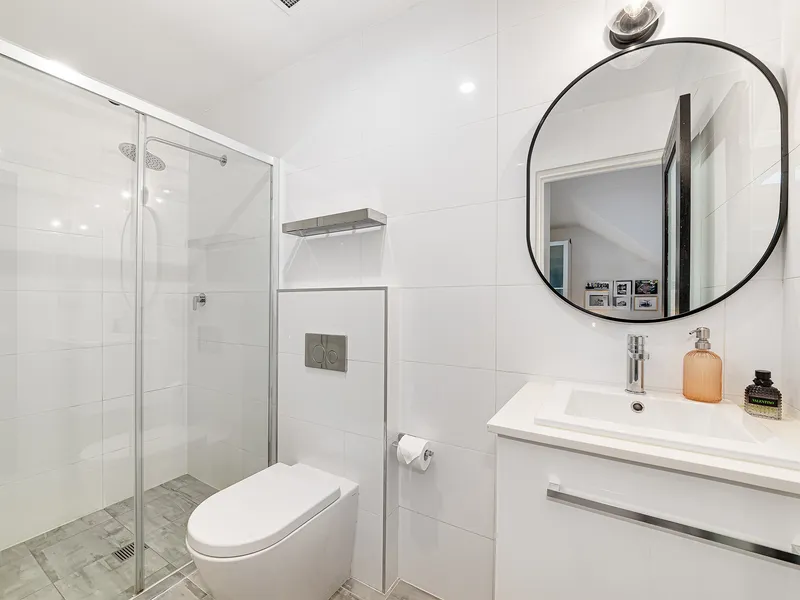 • Stylish contemporary bathroom, concealed laundry with washer/dryer