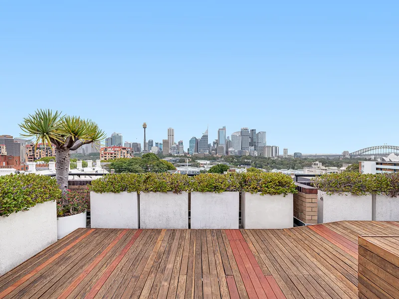 • Common rooftop with gardens, City, harbour Bridge + Opera House views