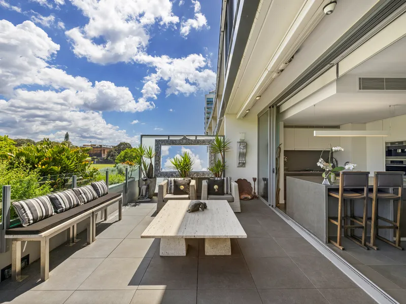 - Automated bi-fold doors create seamless outdoor flow to a balcony and terrace