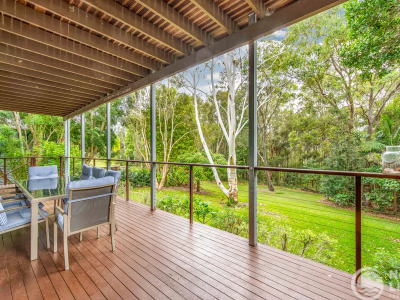 Positioned on a desirable corner block, the home enjoys sweeping 180-degree green outlooks. With a nature reserve directly opposite, parkland to the north-east and lush gardens to the north, the main living areas are private, sheltered and immersed in natural beauty.