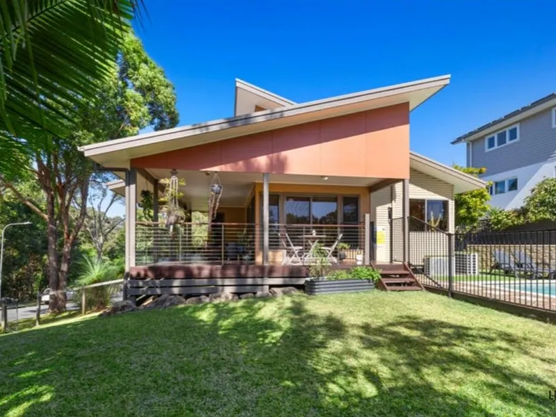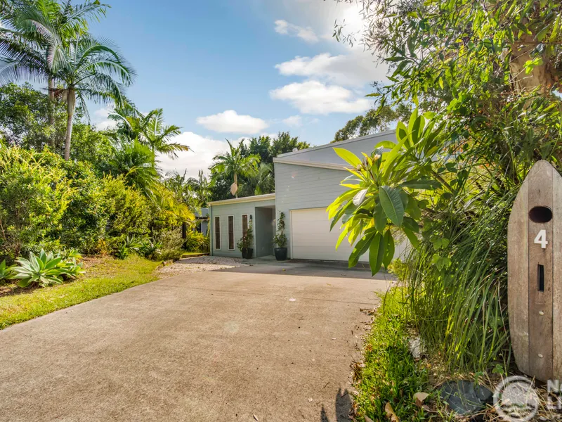Enjoy the rare combination of coastal living and tranquil, nature-filled surrounds with this beautifully designed four bedroom, three bathroom split-level home, located less than two minutes from the beach in the eco-friendly Koala Beach Estate.