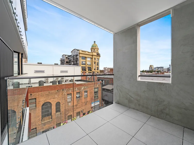 The spacious living area boasts sleek floating floorboards, split system heating and cooling, and flows seamlessly onto a private adjoining balcony, perfect for relaxing or entertaining.