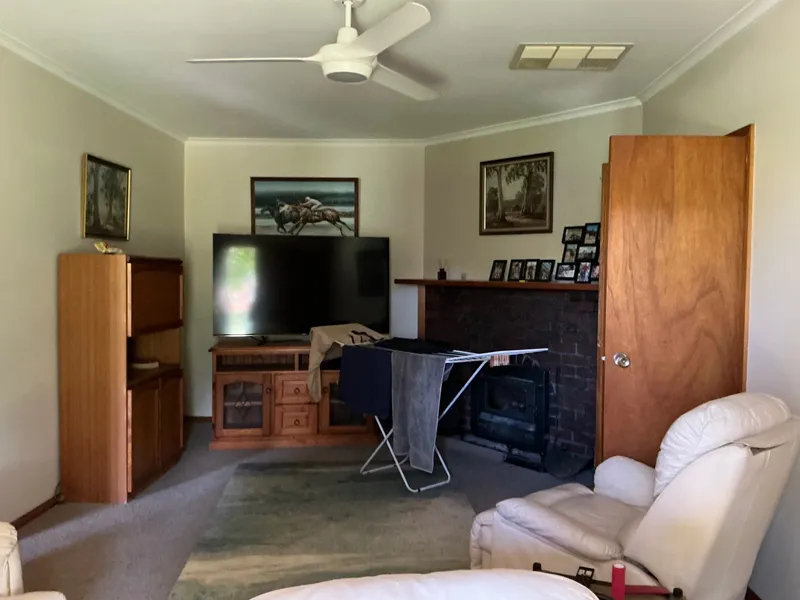 All four bedrooms feature built in robes, with two also equipped with ceiling fans. The home boasts two generous living areas, both capturing beautiful views of the surrounding countryside,with evaporative cooling and wood heating.