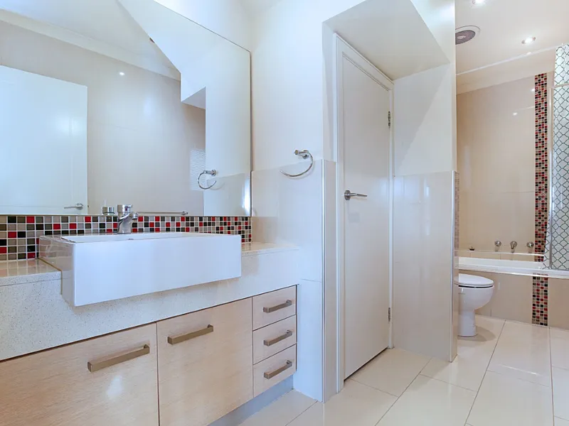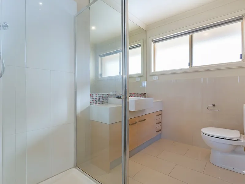 The flexible layout includes one bedroom downstairs, perfect for guests or a home office, plus two carpeted bedrooms upstairs. The master bedroom has its own ensuite and split system, making it a comfortable and private retreat. Theres also a large main bathroom and the added bonus of a single car garage.