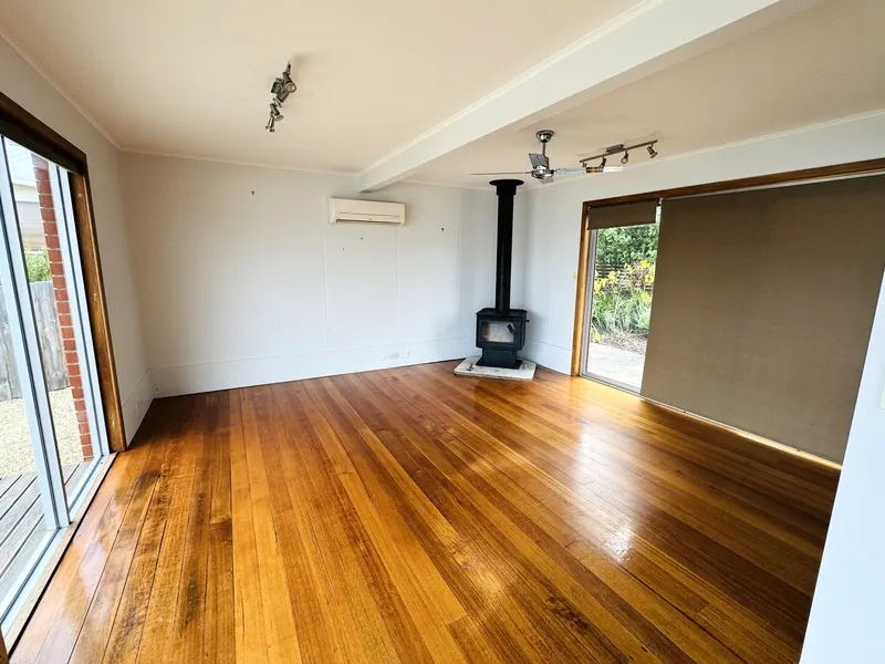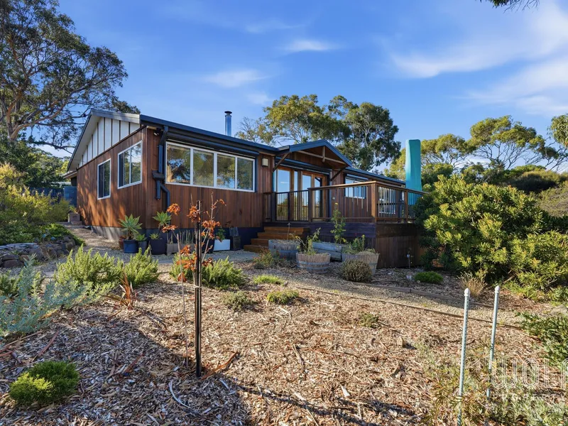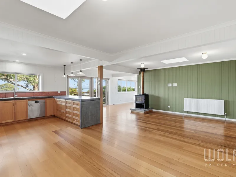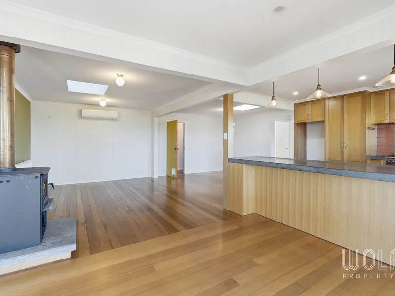 Filled with natural light, the home features a spacious open-plan living and dining area designed to take full advantage of the outlook. The home is kept comfortable year-round with both a wood heater for cosy winter nights and a reverse cycle air conditioner for heating and cooling.
