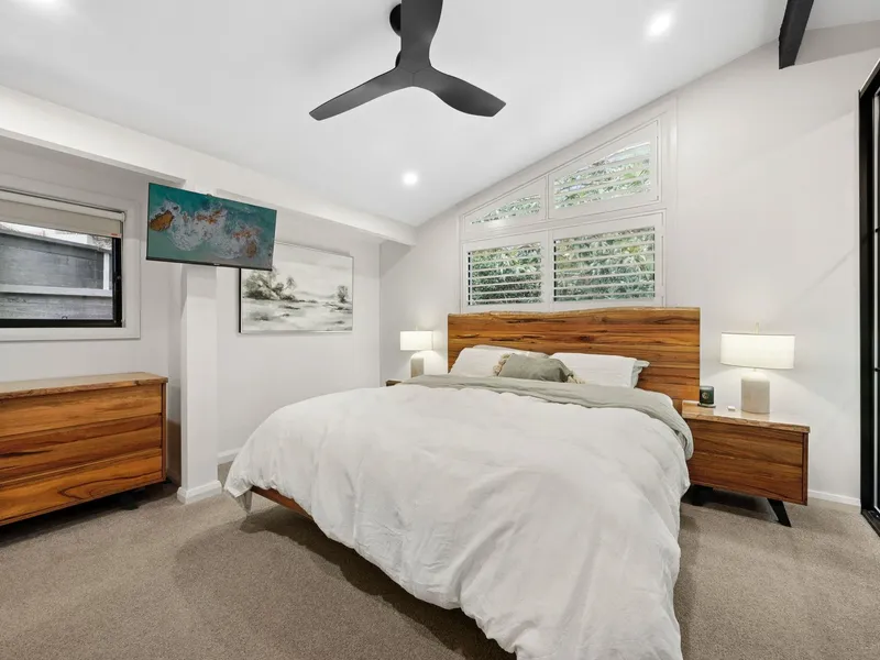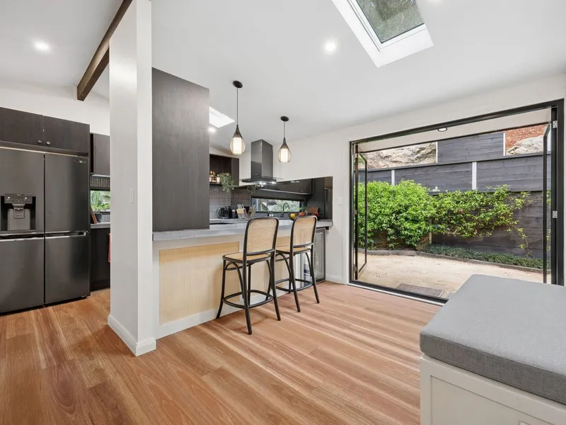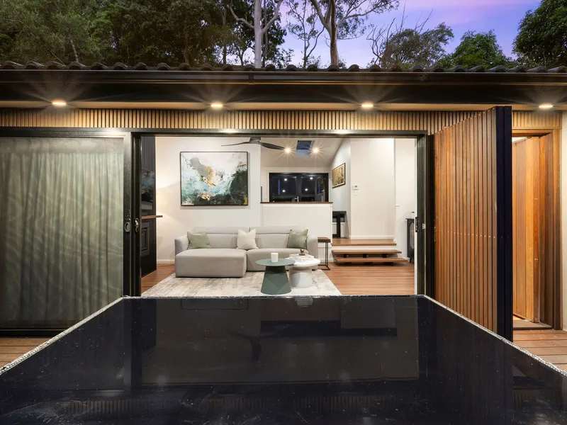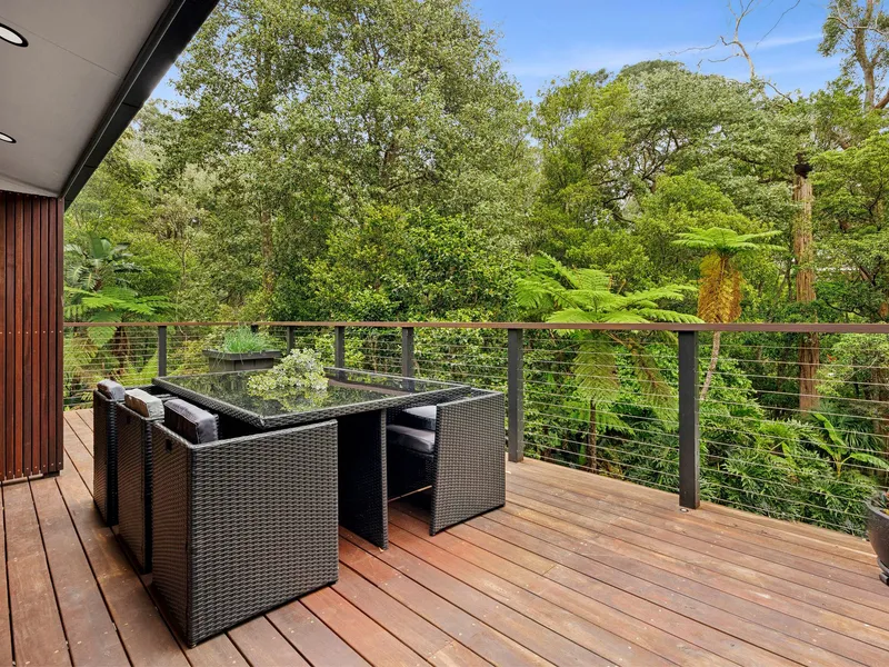 Set well back from the street at the end of a peaceful cul-de-sac, this exceptional residence blends iconic mid-century design with contemporary architectural refinement, preserving the integrity of its original Petit & Sevitt heritage. Split-level living and dining zones flow seamlessly to expansive outdoor spaces, including a vibrant entertainers' deck overlooking an impressive north-facing garden with multiple tiered, level lawns, a barbecue area and fire pit, while thoughtfully curated interiors deliver comfort and style, highlighted by a luxurious master suite with a beautifully appointed ensuite featuring heated floors.