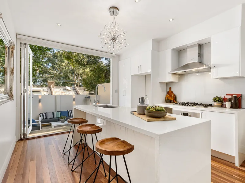 The modern oversized kitchen is perfect for those who love to cook and entertain, offering ample storage and bench space while seamlessly flowing into the expansive living and dining area.