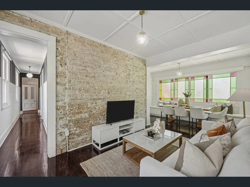 Unique in style this 3 bedroom ground floor apartment with its own private entry enjoys a house-like feel & includes 2 separate living areas.