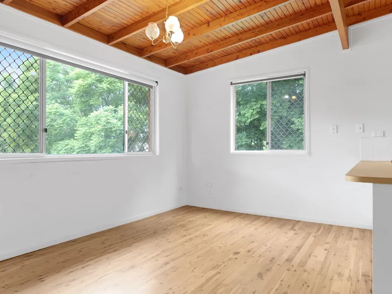 A covered tiled outdoor entertaining area sits under the roofline and overlooks the private courtyard, offering a peaceful space to relax or entertain. The courtyard has been landscaped for low-maintenance living.