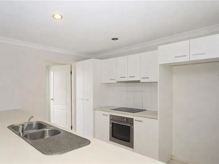 Inside, you are welcomed by a spacious living area complete with air conditioning to keep you comfortable year-round. The adjoining dining space flows through to a well-equipped kitchen with ample cupboard and drawer storage, making everyday cooking and organisation simple. All three bedrooms include built-in wardrobes, while the central bathroom is neat and functional with a shower-over-bath, vanity, mirror cabinet and toilet.