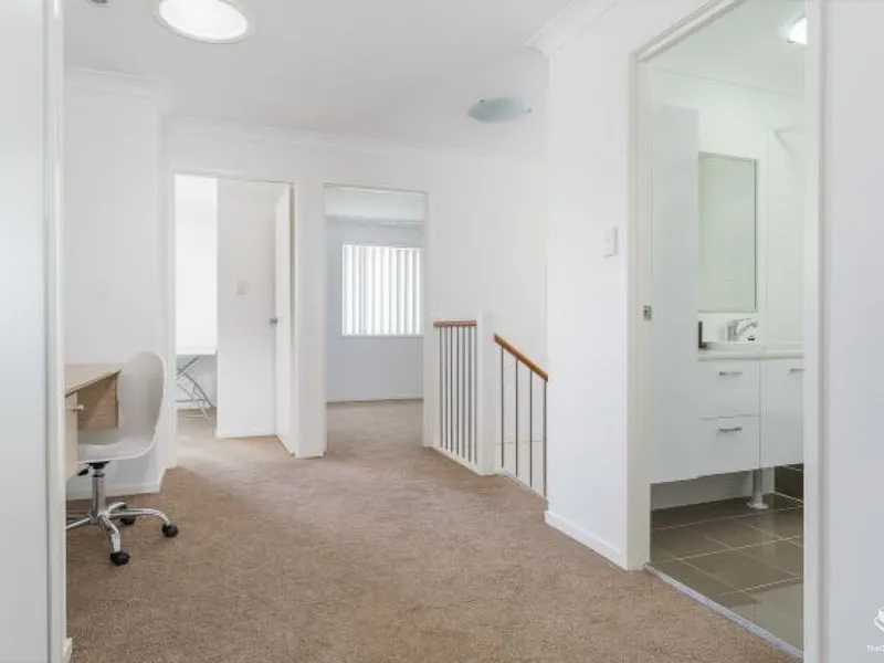 This impressive 4 Bedroom townhouse is well designed and spacious. The upper level contains four good sized bedrooms all with built in wardrobes and fans. The master bedroom is air conditioned and has a spacious ensuite. There is a second master bedroom with ensuite, the main bathroom has bath and shower, and a separate powder room is located downstairs. The spacious landing includes a built in office/study desk and double linen closet.