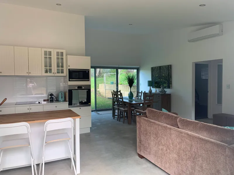 Bright and airy studio attached to main house, separate entry, located in Redgate approx 3 kms from Redgate Beach, consisting of 2 Bedrooms, 1 bathroom, with separate WC. Open planed living/meals and kitchen. Fully furnished. Reverse cycle air conditioner. Property consists of 8 acres and owners and their dog reside in main house to which Studio is attached so Sorry but No Pets. No Parties. Please register interest to confirm viewing time