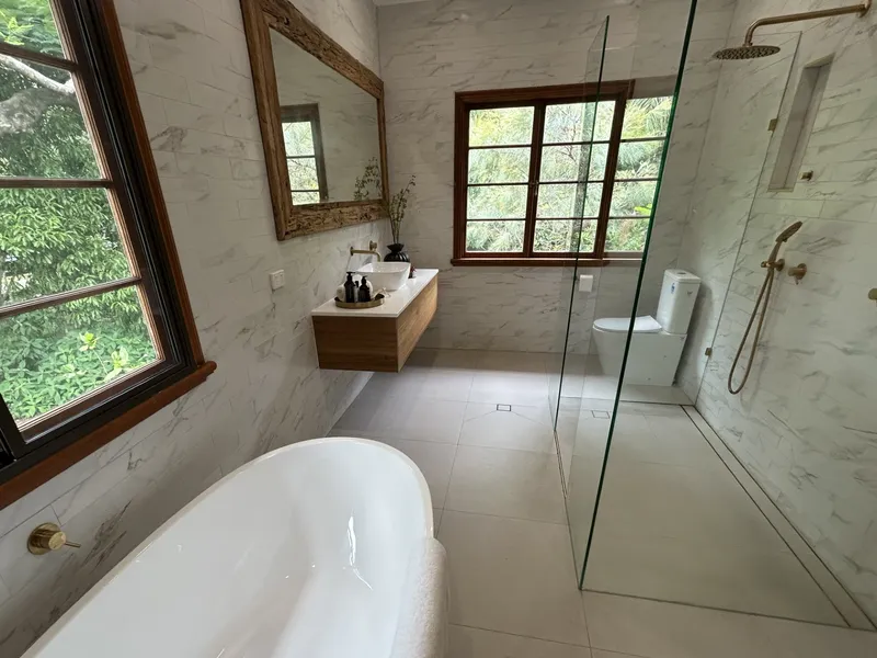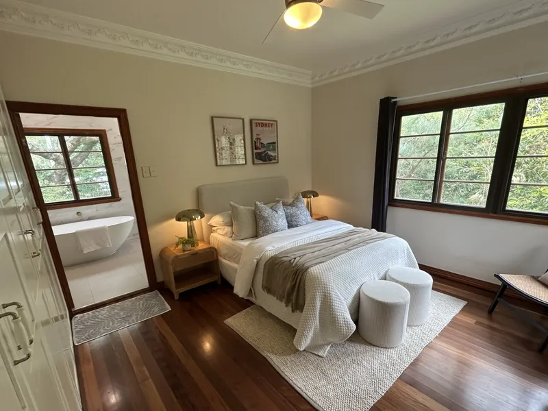 Featuring high ceilings throughout and stunning timber floors, the home boasts a spacious open-plan dining and family area that flows seamlessly from the kitchen—perfect for everyday living and entertaining. Comfort is assured year-round with air conditioning throughout, while the beautifully renovated bathrooms add a touch of luxury.