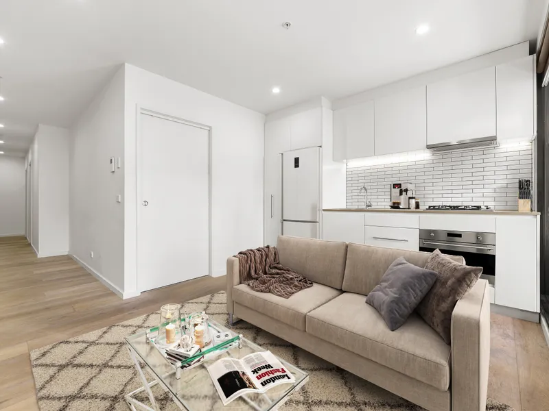 Perfectly located minutes away from Melbourne CBD, this stunning, modern apartment on the ground floor is walking distance away from the train station, restaurants, shops and cafes along Victoria Street.