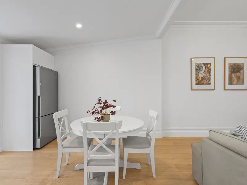 Inside, classic cottage charm meets contemporary ease. Warm timber floorboards flow through the light filled living and dining spaces, complemented by a soft neutral palette and split system air conditioning for year round comfort.