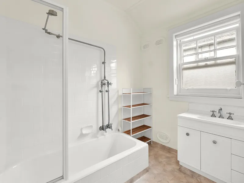 Surrounded by established gardens and rich in period charm, the apartment showcases classic Art Deco features including polished timber floors, high ornate ceilings and generous proportions throughout. The well maintained interiors provide comfortable living while retaining the character and warmth of the building’s 1920s heritage.