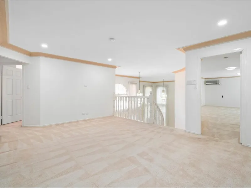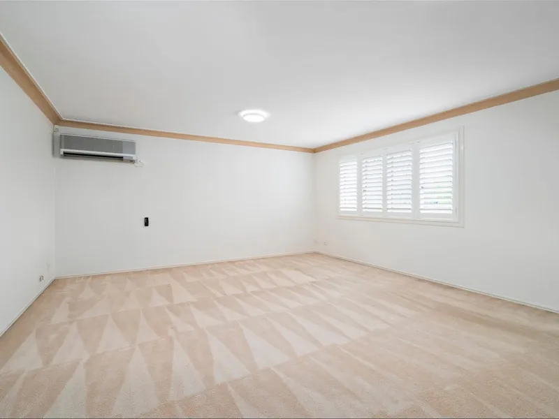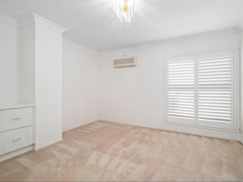 High ceilings, air conditioning, polished tiles, warm carpet, trendy white shutters, ducted vacuum, and security/intercom system.