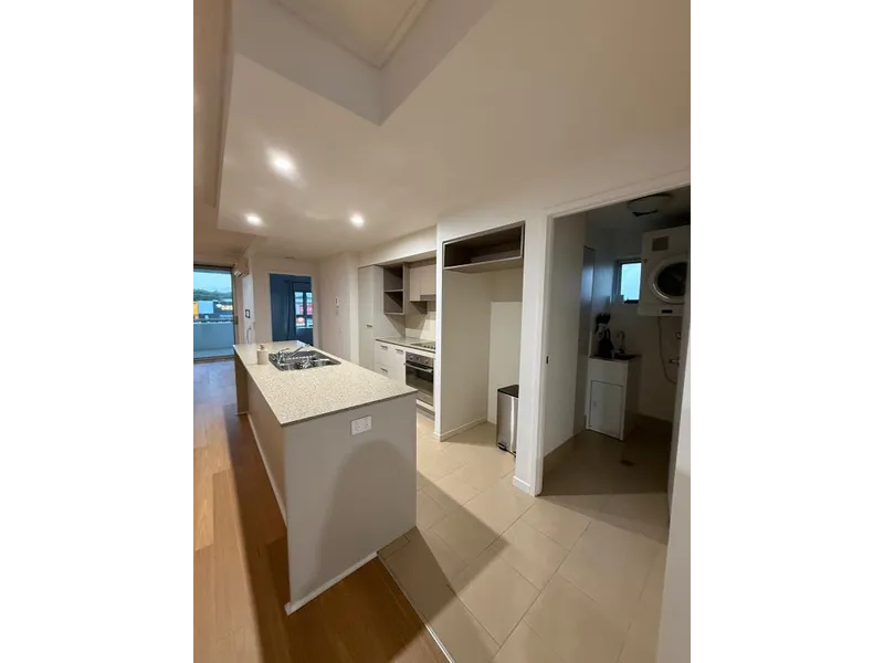 The open-plan kitchen, living, and dining area is air-conditioned and filled with natural light, flowing out to a large, covered north-facing balcony—ideal for relaxing after work or entertaining friends.