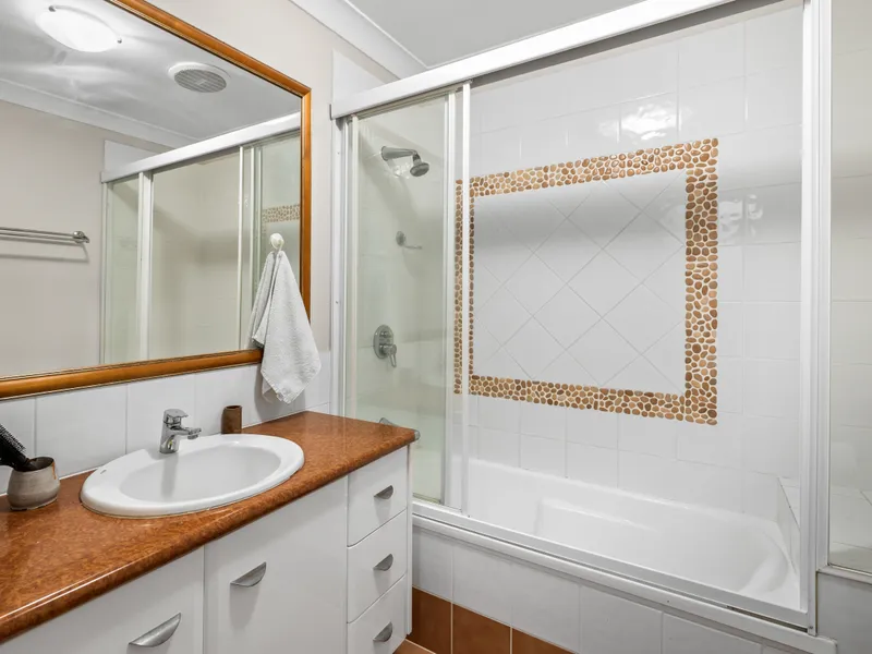 Looking for a spacious and modern townhouse in a gated complex with resort-style amenities? Look no further than this 3-bedroom, 2.5-bathroom property at 8 Woody Views Way, Robina. This townhouse features an open plan living area with air-conditioning, tiles and an outdoor alfresco area. The kitchen is equipped with granite bench top, stove top, wall oven, dishwasher and plenty of cupboard space. The master bedroom has a renovated ensuite and all bedrooms have ceiling fans and sliding robes. There is also a double lock-up garage with internal access and a private patio and lawn area at the rear. You can enjoy the facilities of the complex, which include a function room, inground saltwater pool, spa and a BBQ pavilion. The complex is well-managed and has an onsite manager, security gate and intercom. The location is ideal, as it is within walking distance to Robina Town Centre and very close to public transport, schools and other amenities. Don't miss this opportunity to live in this sought-after complex in Robina. Contact us today to arrange an inspection.