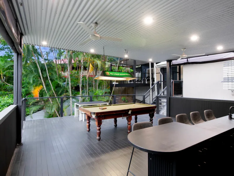 From the moment you arrive, established greenery, ample parking and generous storage set the tone. The showpiece is the elevated front entertaining deck - a private oasis complete with covered alfresco area, wet bar, powder room and pool table space. Perfect for long lunches, sunset drinks or lively evenings with friends, all enjoyed with cooling breezes and rare seclusion.