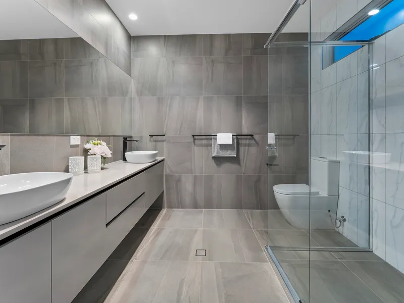 Upstairs, the home continues its focus on comfort and liveability. A beautifully appointed main suite offers a peaceful retreat, complete with a walk-in wardrobe and a stunning ensuite finished with contemporary tiling and elegant fixtures. Additional bedrooms are well positioned and generously proportioned, perfect for family members or guests. A secondary living area on this level provides extra flexibility - ideal as a media lounge, reading corner or children's retreat. Every bathroom throughout the home mirrors the same high standard, with timeless finishes and thoughtful detailing.