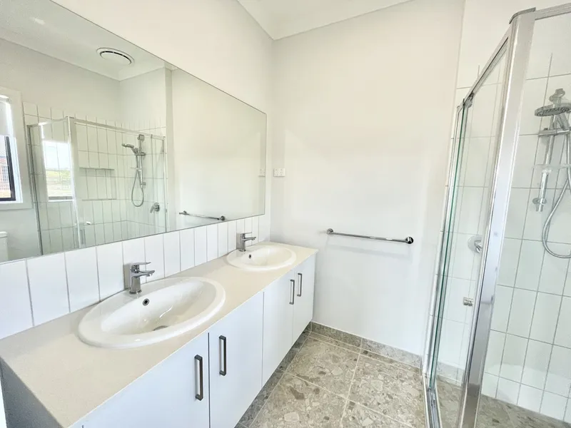 The home features 4 spacious bedrooms, including a master with an en-suite (2 basins) and a walk-in wardrobe. The other three bedrooms are equipped with built-in wardrobes