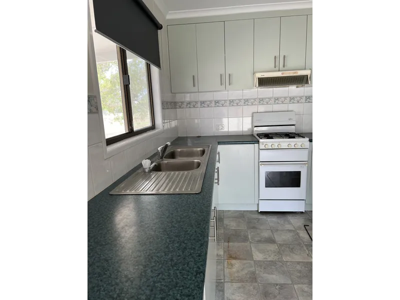 • Kitchen is positioned off the living area with plenty of cupboard space and gas cooking