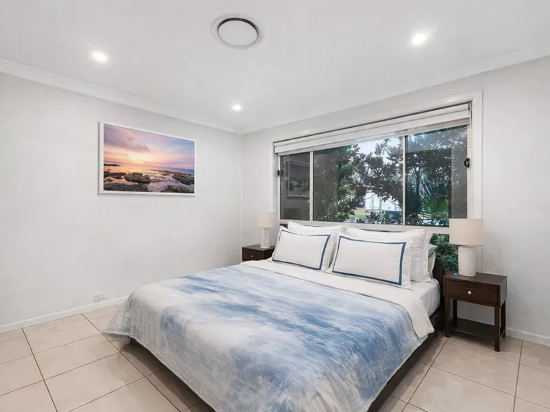 A standout feature is the air-conditioned lock-up garage, offering a versatile space ideal for storage, a home gym, workshop, workspace or additional living area, in addition to covered and off-street parking.