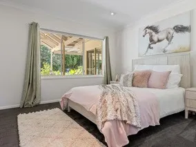 Set on a working macadamia farm in the heart of Rosebank’s lush hinterland, this beautiful four-bedroom family home offers space, privacy, and sweeping rural views. Elevated at 160 metres and surrounded by pockets of rainforest and productive farmland, the property enjoys panoramic outlooks stretching north to Mt Nardi and south across the valley.