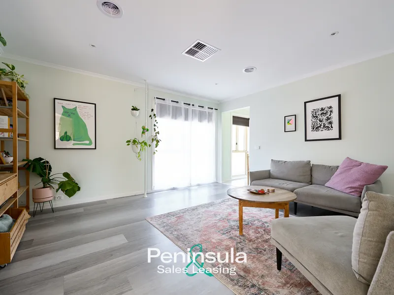 Bright sunny aspect, sheltered rear courtyard & a lovely sense of space feature in this single-level home offering huge main + 2nd bedroom, 2-way bathroom, powder room & 2 spacious living areas filled with natural light. The compact functional kitchen overlooks a covered alfresco entertaining area & private, paved courtyard garden. Ducted gas heat, evaporative cool & external sunblinds provide year round climate control. Feel secure & safe in the perfect downsizer, rental investment, holiday or sea change residence lock-up & leave security. 850m/11 min walk to McCrae Plaza & beach, 1.5kl to Lighthouse & restaurant/cafés. 2mins to Peninsula Link access. Perfectly positioned to start your beachside lifestyle in a calm coastal ambience.