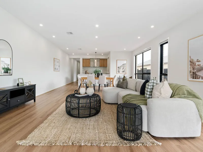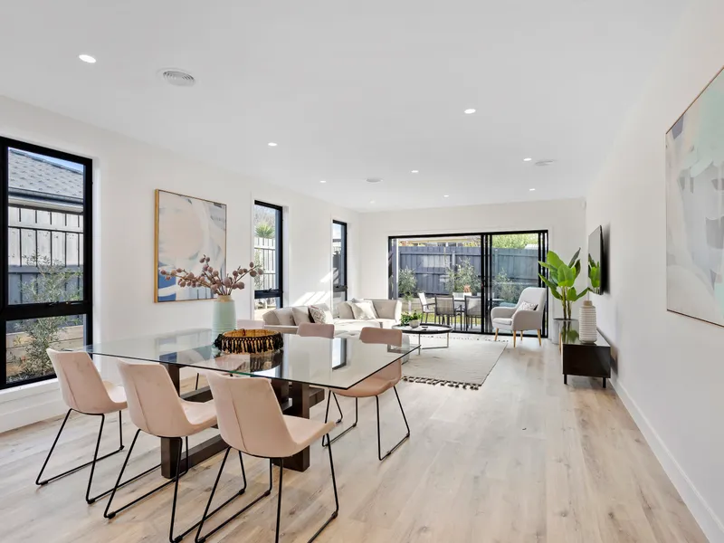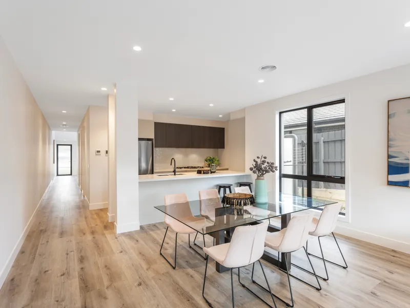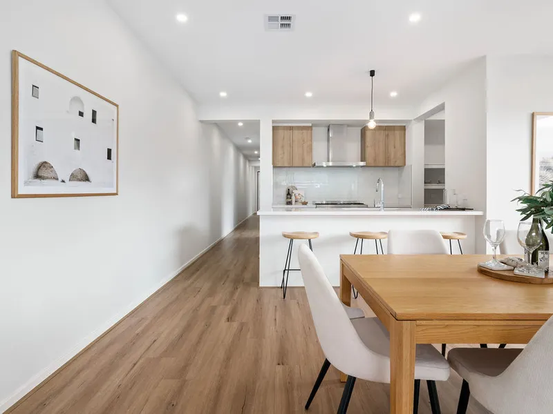 Built in 2021, this lovely home sits on approximately 283m² and features three generous bedrooms, two stylish bathrooms, one powder room and secure parking for two vehicles. Designed with easy living in mind, the light-filled open-plan layout creates a warm and inviting space perfect for relaxing or entertaining.