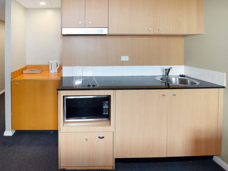- Kitchenette with dishwasher, microwave, 2 burner hotplate and bar fridge