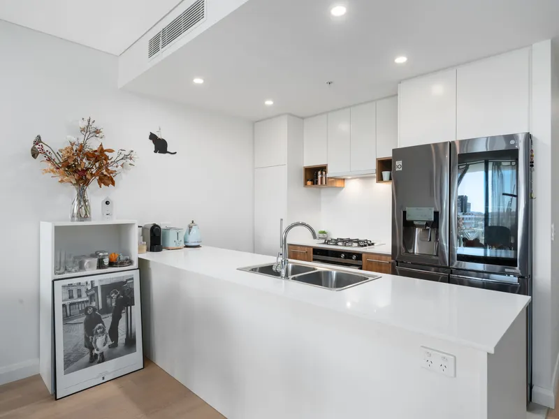 - Contemporary Kitchen: Features sleek white cabinetry, a gas cooktop, an under-bench oven, and plenty of preparation space.