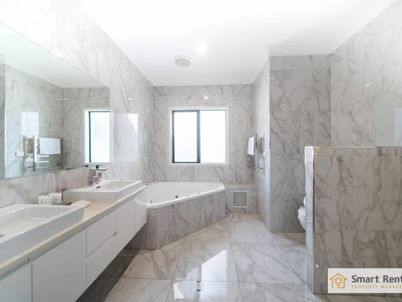 - Master suite with walk-in robe, spa bath, ensuite shower and toilet