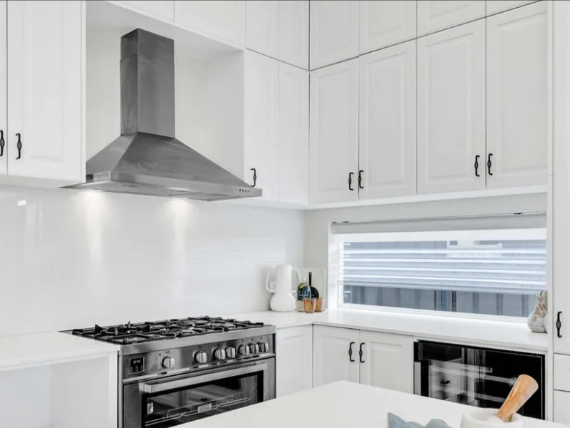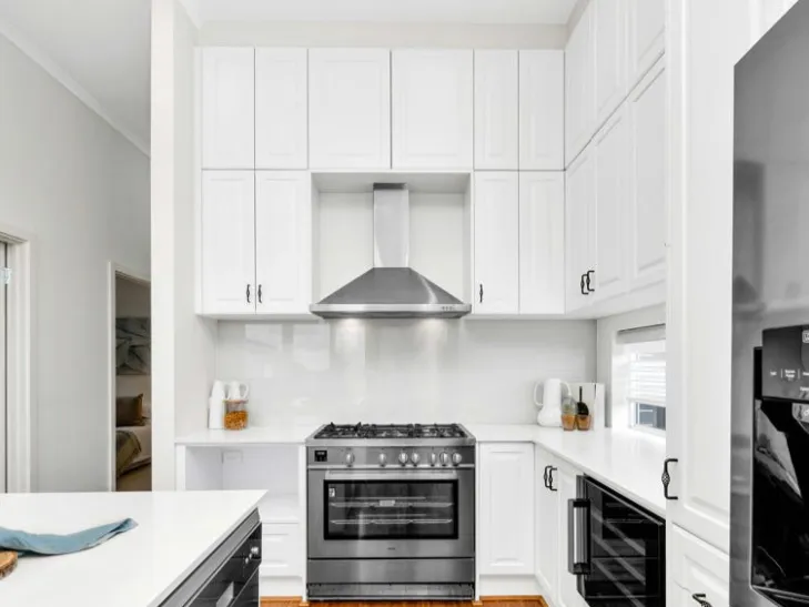 - Sunlit open-plan kitchen, dining and living area featuring a stylish island bench