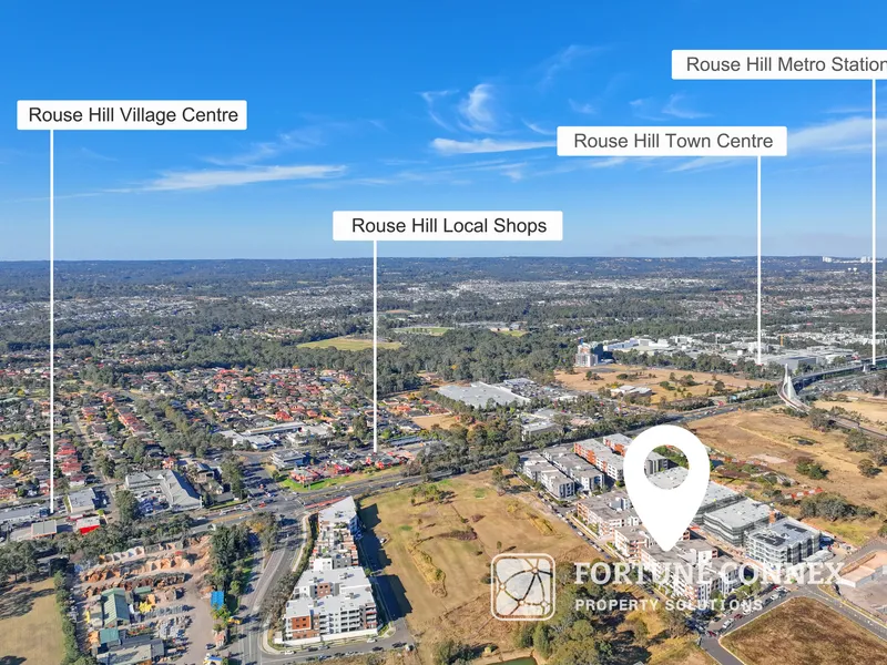 Fortune Connex is excited to present this spacious and modern 2-bedroom apartment, perfectly located in the heart of Rouse Hill. Offering a low-maintenance lifestyle, this apartment is just a short walk from Rouse Hill train station, Rouse Hill Village shopping centre, and local bus stops. It's also only a 3-minute drive to Rouse Hill High School, Rouse Hill Anglican College, and Rouse Hill Public School. Nestled within beautifully maintained green spaces and surrounded by parks, local cafés, and restaurants, this is truly a prime location.