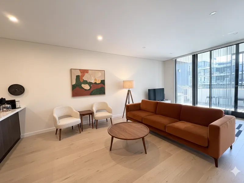 - Open-plan living and dining area with skyline, filled with natural light for a bright and airy feel