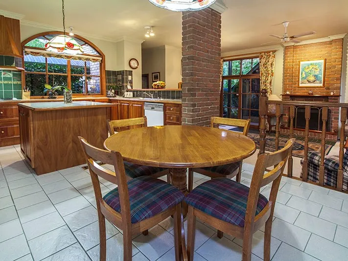 • a generous central living zone with wood fireplace, casual meals area, formal dining and a formal lounge with bar which would also make a perfect games room;