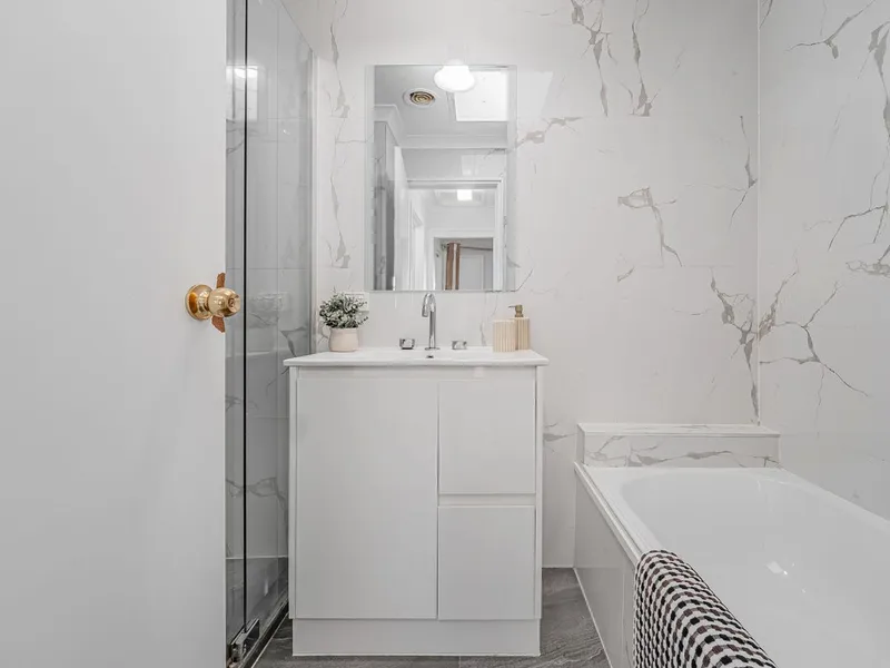 - Fully renovated bathrooms with ceiling height trendy tiles, modern faucets, shower heads, modern glass shower screens, waterproof PVC vanities with ceramic tops.