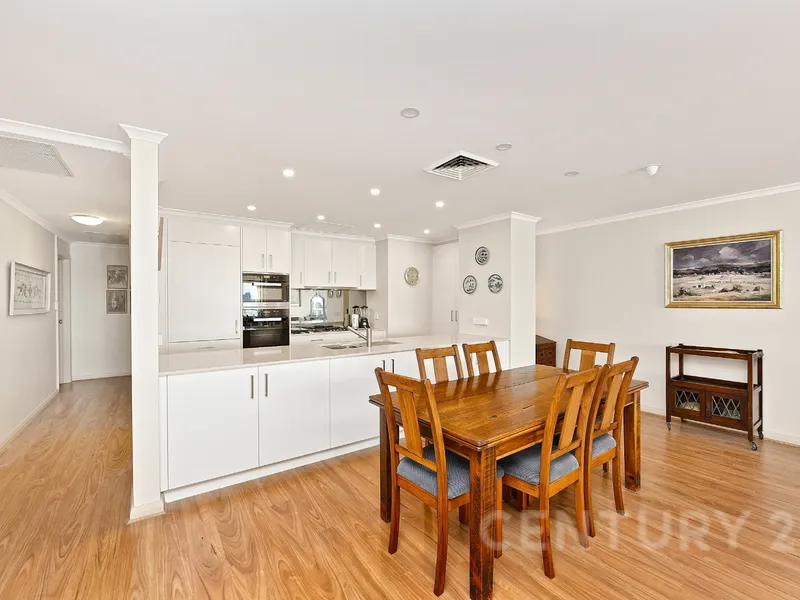 * Generous open-plan living and dining with timber floorboards