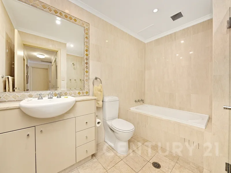 * Two luxurious marble-tiled bathrooms, each with bathtub